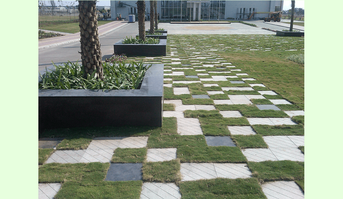 Softening the barren land space, by enveloping landscape to built spaces and buildings. Creating approachable and urban settings in an industrial zone.