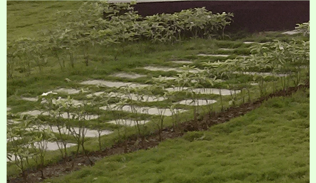 A sustainable, native species landscape sitting pretty justaposed with factory buildings. Ageing and maturing with time, adding to grandeur.
