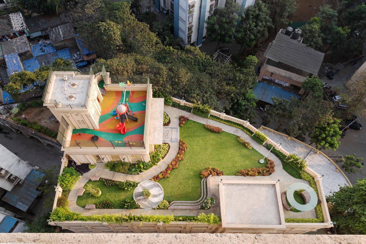 Near zero natural ground, Garden created on parking podium slab.